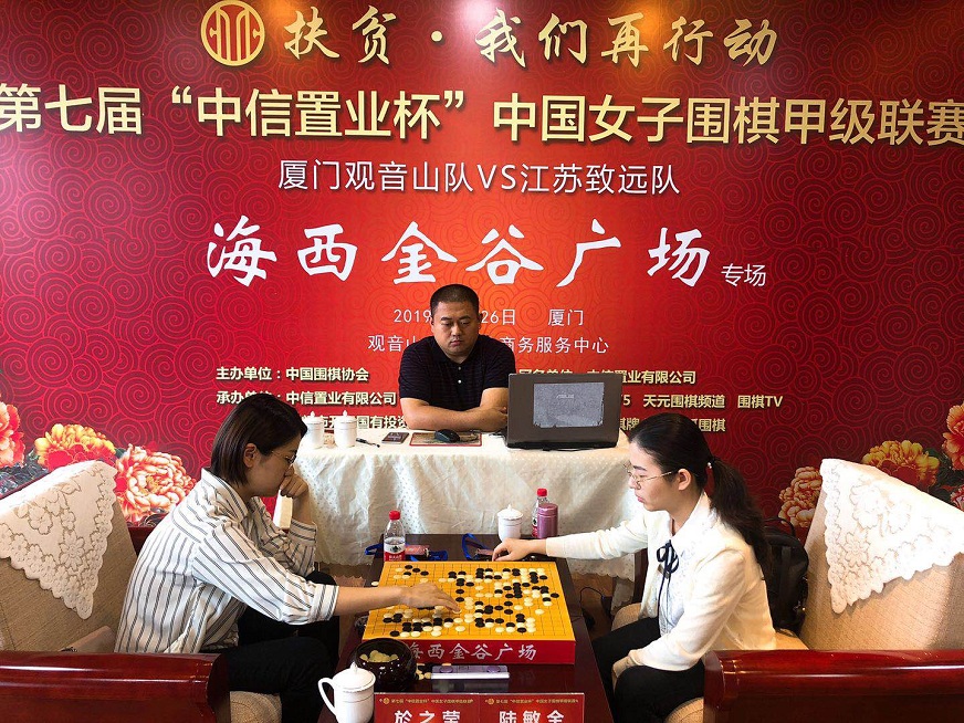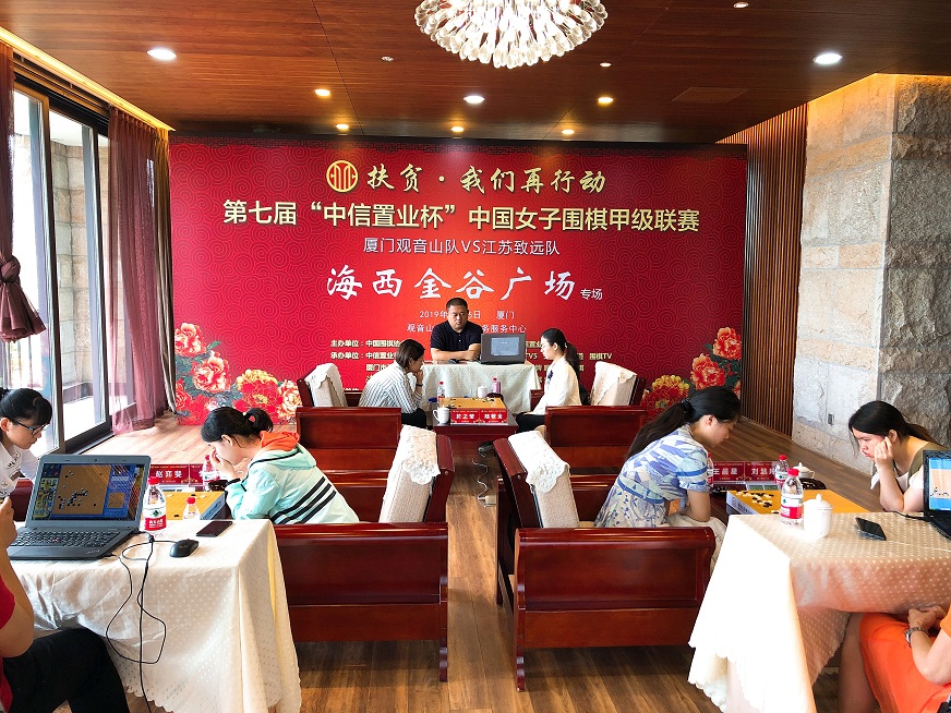 都說魚離不開水,魚兒上了陸,結(jié)果一望便知。這不,上周末,美麗鷺島就又上演了一場(chǎng)魚兒登陸的好戲。5月26日,第7屆中信置業(yè)杯中國(guó)女子圍棋甲級(jí)聯(lián)賽第3輪(廈門觀音山隊(duì)主場(chǎng) VS 江蘇致遠(yuǎn)隊(duì))“海西金谷廣場(chǎng)”專場(chǎng)在位于廈門觀音山海岸的觀音山總部企業(yè)商務(wù)服務(wù)中心戰(zhàn)罷。廈門觀音山隊(duì)家門口以2-1鎖定勝局,成功挑落女子圍甲六冠王——衛(wèi)冕冠軍江蘇隊(duì)。