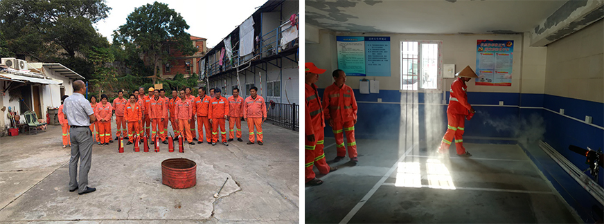 另外,公司還組織環(huán)衛(wèi)所在道班房、宿舍開(kāi)展消防演練,學(xué)習(xí)滅火器的使用方法,強(qiáng)化員工防火意識(shí),增強(qiáng)逃生、火災(zāi)應(yīng)對(duì)能力。