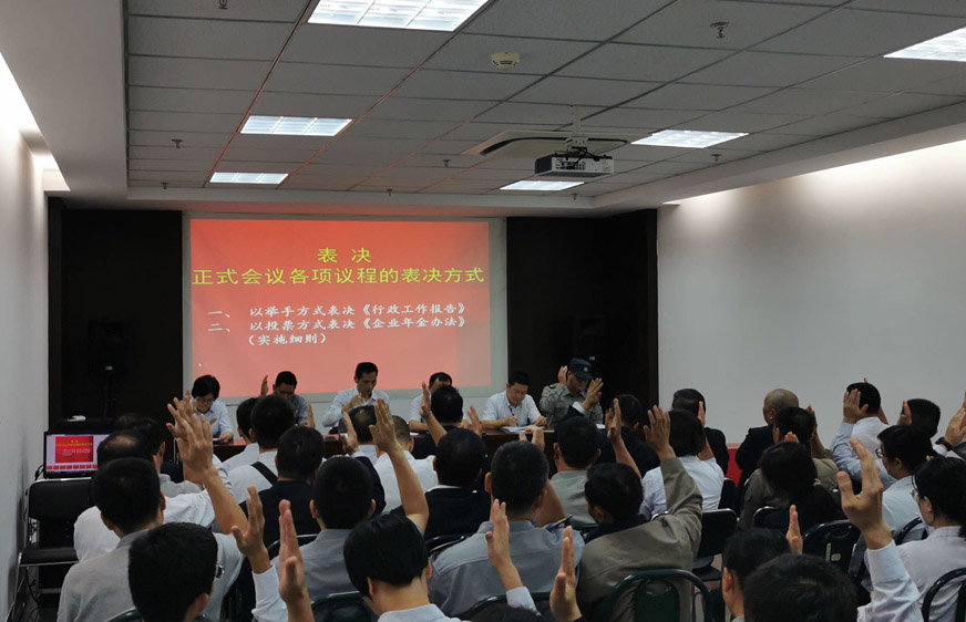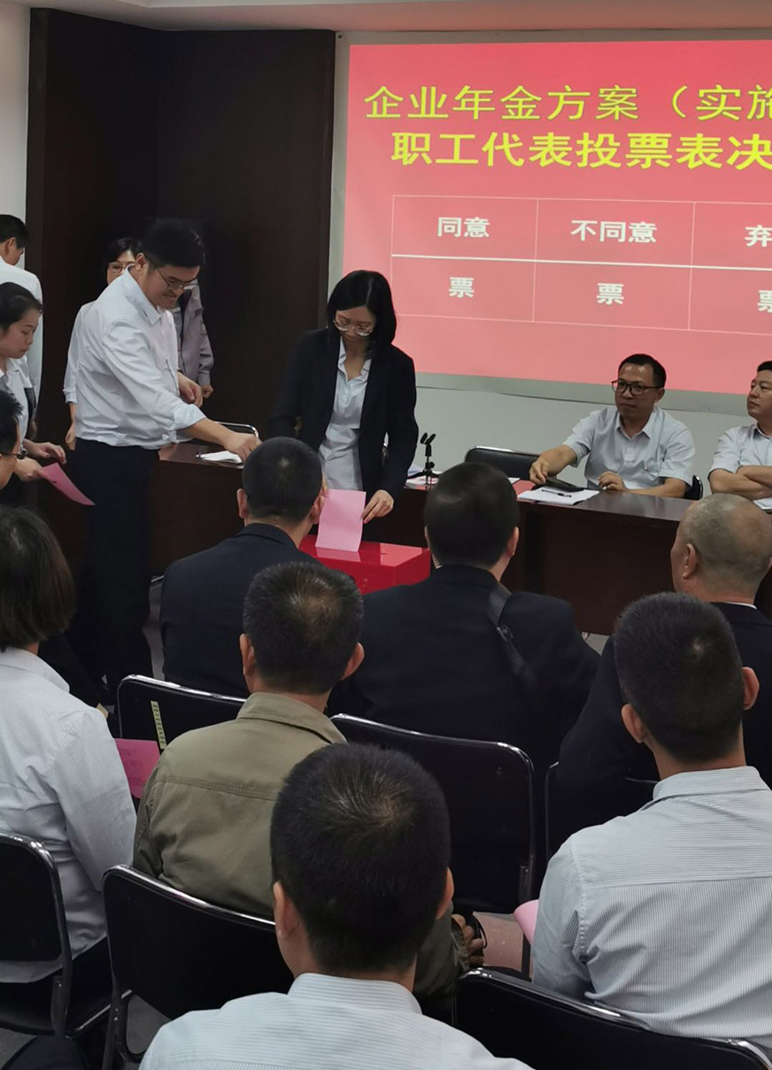 行政部負(fù)責(zé)人向大會作了《企業(yè)年金方案》的講解和說明,職工代表分組就《企業(yè)年金方案(實施細(xì)則)》進行討論,最后與會職工代表以無記名投票方式表決通過了《企業(yè)年金方案(實施細(xì)則)》。