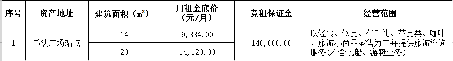 備注:意向承租人對上述情況應(yīng)有充分了解。詳細(xì)招租規(guī)則、合同、承諾函、報(bào)價(jià)單等招租文件于報(bào)名參加時(shí)領(lǐng)取。