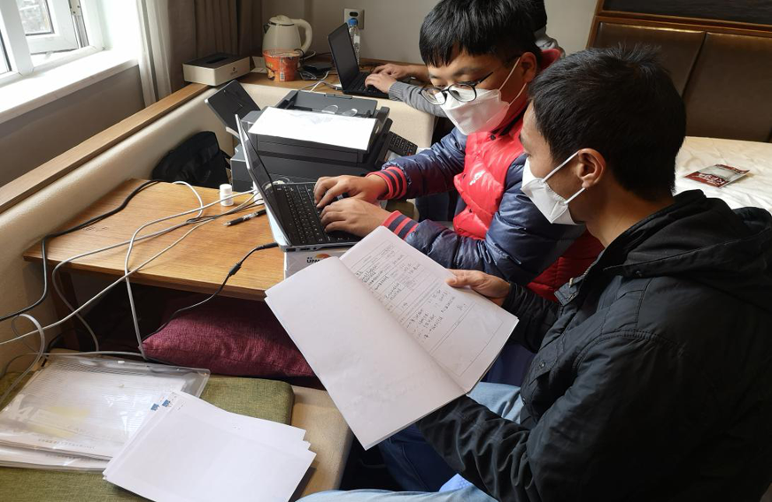 境外入廈人員到達酒店的時間不盡相同,大部分集中在午后至凌晨居多,小分隊志愿者們對工作盡職盡責,至半夜是常態(tài)化。3月17日,蔡東海、周秋平通宵達旦處理完當日數據。第二天白天,他們本該輪休,當接到大批旅客入廈需待命的通知,知道團隊小伙伴們力量不足,他們都笑笑說:“算了算了,現(xiàn)在也睡不著,繼續(xù)工作好了”。于是,又堅持著繼續(xù)工作……堅持是他們迎接勝利的信心!