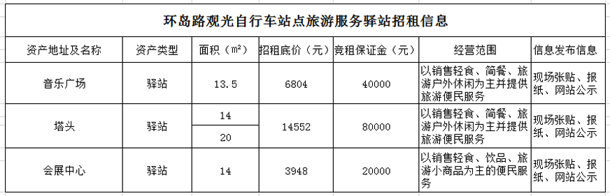 備注:意向承租人對上述情況應(yīng)有充分了解。詳細招租規(guī)則、合同、承諾函、報價單等招租文件于報名參加時領(lǐng)取。