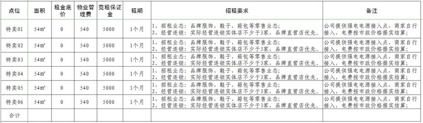 特賣(mài)點(diǎn)位公開(kāi)招租公告