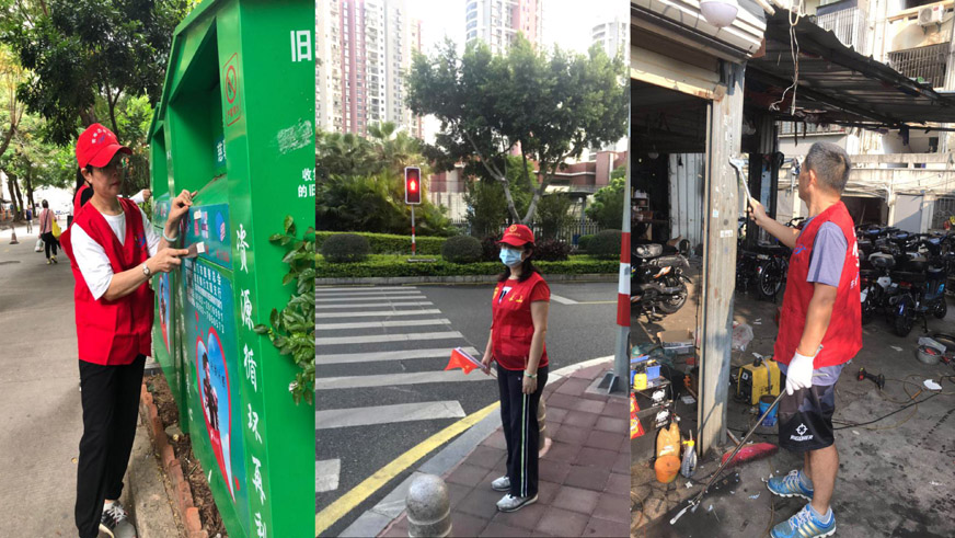 各支部黨員積極參與志愿者服務(wù),努力改善周邊環(huán)境面貌,維持公共秩序,提升文明素質(zhì),發(fā)揮黨員的先鋒模范作用。在黨員志愿者的積極帶動下,群眾志愿者們也紛紛加入創(chuàng)城行動,爭當(dāng)紅色馬甲環(huán)保小衛(wèi)士,變身為“清潔員”“勸導(dǎo)員”“交通員”。