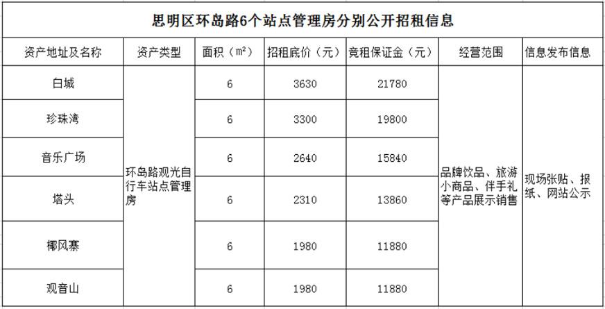 思明區(qū)環(huán)島路6個(gè)站點(diǎn)管理房分別公開招租公告