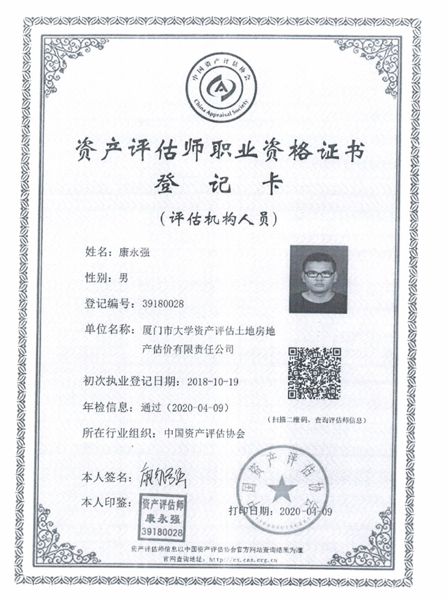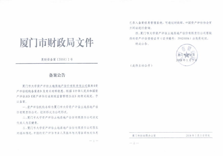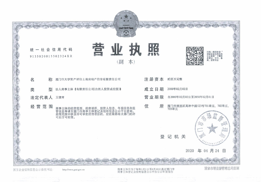 2. 廈門市大學資產(chǎn)評估土地房地產(chǎn)估價有限責任公司相關資質證書