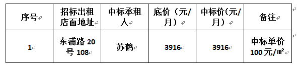浦南安置小區(qū)東浦路20號(hào)103等12間店面公開招租結(jié)果公告