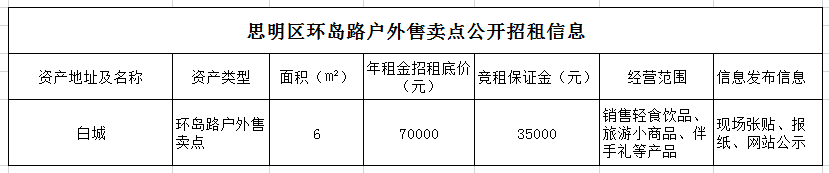 思明區(qū)環(huán)島路戶外售賣點公開招租公告