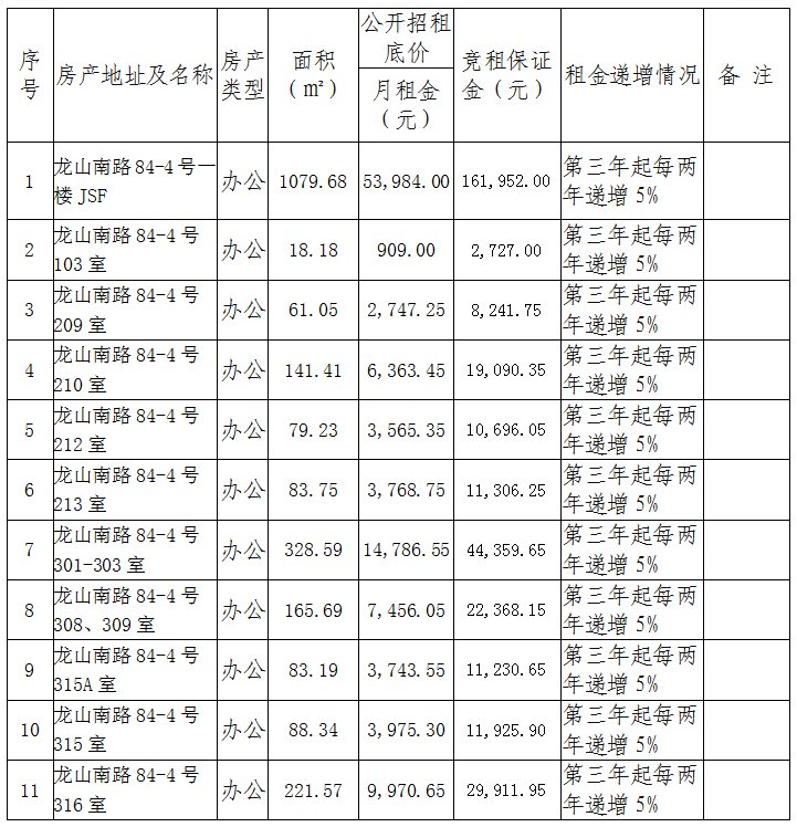 根據(jù)國有企業(yè)資產出租管理相關制度,我司決定對位于思明區(qū)龍山南路84-4號樓部分面積房產對符合入駐條件的意向承租人進行公開競價招租,具體信息如下: