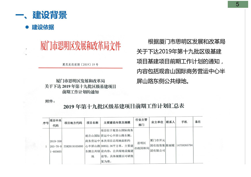 觀音山片區(qū)作為兩岸金融中心片區(qū)重要組成部分,公共綠地建設、養(yǎng)護水平的高低關系到兩岸金融中心建設的品質。為提升片區(qū)景觀形象,優(yōu)化投資環(huán)境,根據《廈門市綠地系統(tǒng)規(guī)劃修編及綠線劃定》及片區(qū)修建性詳細規(guī)劃,廈門市開元國有投資集團有限公司擬建設觀音山國際商務營運中心半屏山路東側公共綠地項目,并委托上海東方設計研究院進行了方案設計。根據廈府辦[2019]115號文要求,現將設計方案予以公布并廣泛征求意見。