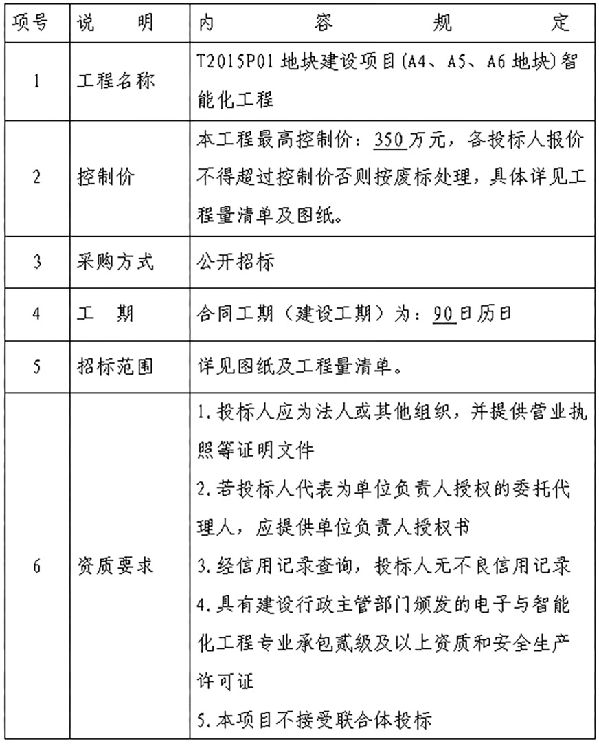 T2015P01地塊建設(shè)項(xiàng)目(A4、A5、A6地塊)智能化工程