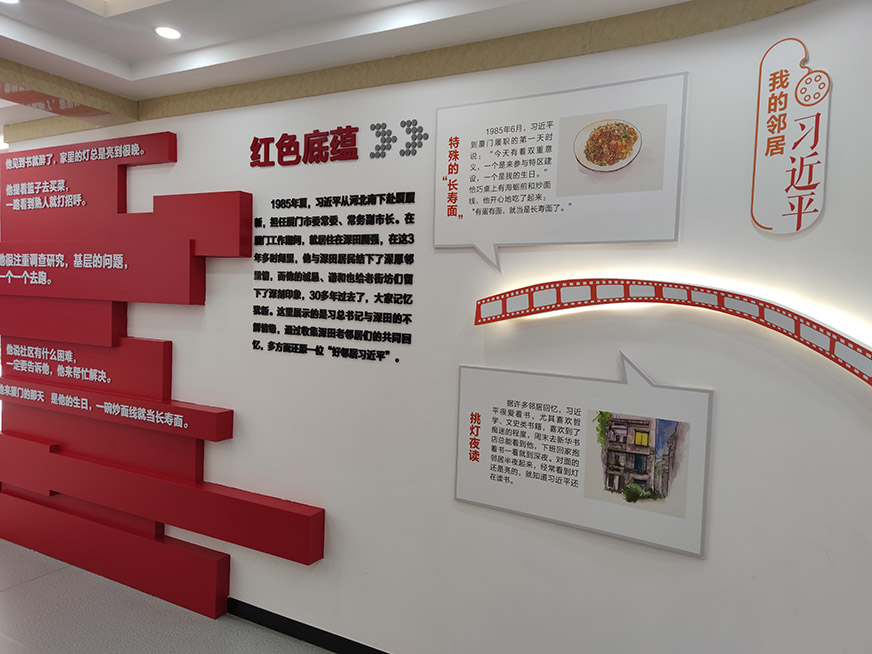 在政治生活館內(nèi),從特別的“長壽面”、簡樸的婚禮、一張手寫明信片等一件件溫馨事跡,從觀看《我的鄰居習(xí)近平》錄像片到聽小朋友生動講述習(xí)爺爺?shù)墓适?,?ldquo;我可以叫你小習(xí)嗎”“伊是阮的好厝邊”及“深田讀冊歌”等小片段中,讓我們仿佛看到了當(dāng)年習(xí)近平總書記入鄉(xiāng)隨俗、與深田居民一起嘮嘮嗑、拉家常的生活場景,直觀感受了習(xí)近平總書記平易近人、誠懇謙和、勤奮好學(xué)的優(yōu)秀品格以及一心為民、清廉務(wù)實(shí)的工作作風(fēng)。