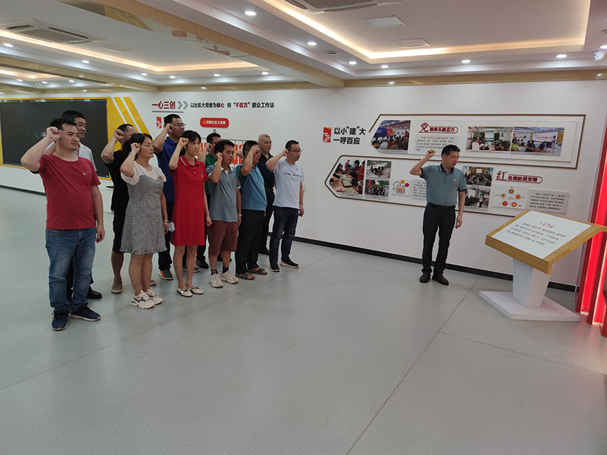 隨著參觀接近尾聲時(shí),在這重要的時(shí)刻,重要的地點(diǎn),黨支部書記陳睿武帶領(lǐng)大家,面向黨旗,莊嚴(yán)地舉起右手,握拳宣誓,重溫入黨誓詞:“我志愿加入中國共產(chǎn)黨,擁護(hù)黨的綱領(lǐng),遵守黨的章程,履行黨員義務(wù),執(zhí)行黨的決定,嚴(yán)守黨的紀(jì)律,保守黨的秘密,對黨忠誠,積極工作……”短短的80個(gè)字,句句千鈞、擲地有聲,讓全體黨員再次接受洗禮,銘記莊嚴(yán)的承諾,牢記共產(chǎn)黨員的初心和使命,堅(jiān)定對黨的事業(yè)奮斗終生的決心。參觀結(jié)束后,大家也紛紛表示將會從深田社區(qū)的紅色印記中汲取力量,牢記初心使命,以更飽滿的熱情積極投身到工作中去,切實(shí)發(fā)揮黨員的先鋒模范作用,為企業(yè)的發(fā)展添磚加瓦。