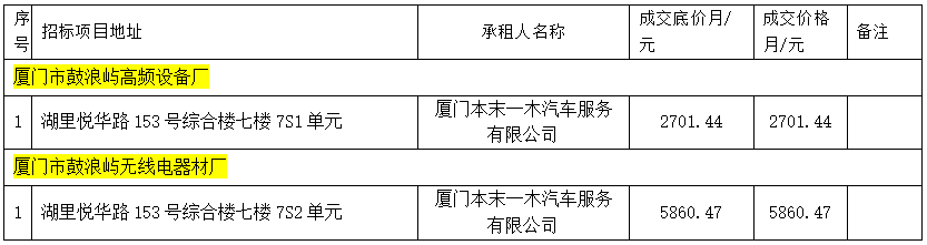 思明區(qū)區(qū)屬托管企業(yè)公開招租成交公告