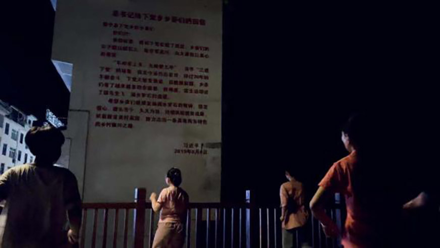 深藍(lán)夜空下的下黨鄉(xiāng)燈火通明,橋邊的白樓上,是習(xí)近平總書(shū)記寫(xiě)給下黨鄉(xiāng)鄉(xiāng)親們的回信,“經(jīng)過(guò)30年的不懈奮斗,下黨天塹變通途、舊貌換新顏,鄉(xiāng)親們有了越來(lái)越多的幸福感、獲得感,這生動(dòng)印證了弱鳥(niǎo)先飛、滴水穿石的道理。”