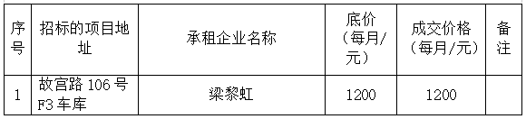 故宮路106號(hào)F3車庫房產(chǎn)招租成交公告