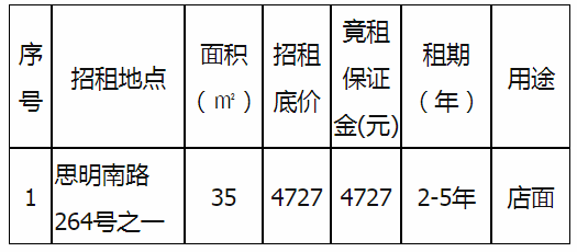 備注:意向承租人對上述情況應(yīng)有充分了解。詳細(xì)招租規(guī)則、房屋租賃合同樣本、承諾函、報價單等招租文件于報名參加時領(lǐng)取。