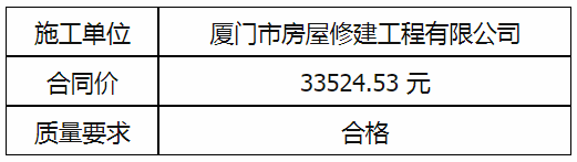 根據(jù)招投標(biāo)管理辦法、思明控股辦[2021]14號文《采購招標(biāo)管理辦法》的相關(guān)規(guī)定,我廠負(fù)責(zé)故宮路95號室外雨水管拆除及新管安裝工程直接發(fā)包廈門市房屋修建工程有限公司實施,現(xiàn)通過思明控股網(wǎng)站于2021年12月 日至2021年12月 日進行成交結(jié)果公示,內(nèi)容如下: