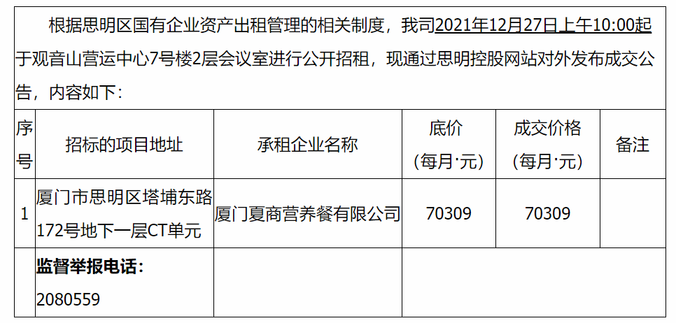 招租成交公告