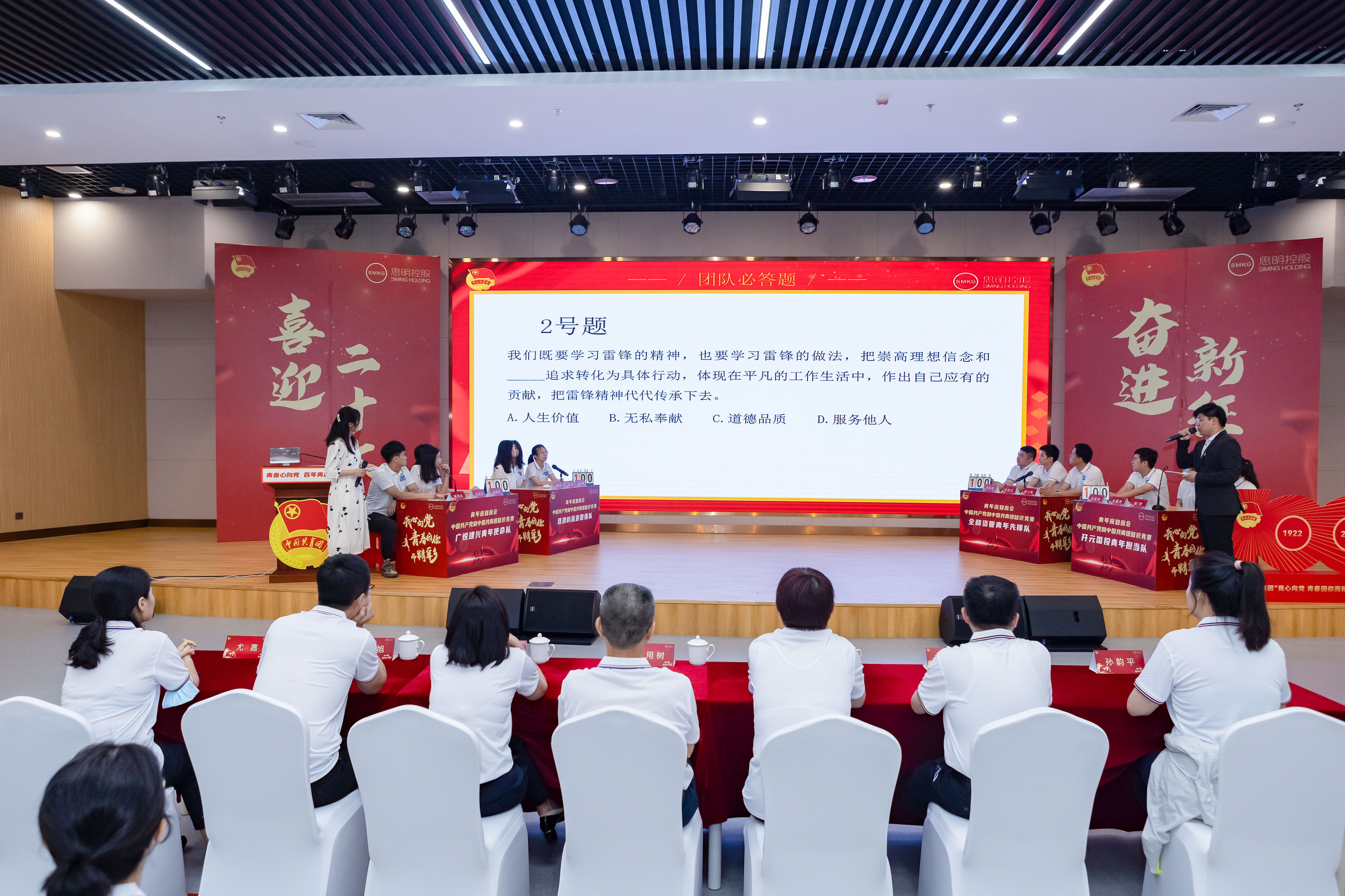 思想政治教育是新時代團員青年的一堂必修課。 “青年應知應會”——中國共產(chǎn)黨和中國共青團知識競賽精彩紛呈,緊張激烈。通過團隊必答題、個人必答題和搶答題三個環(huán)節(jié)角逐,廣悅建興青年使命隊榮獲一等獎,全和資管青年先鋒隊、鼓浪嶼旅游青年圖強隊和開元國投青年擔當隊分別獲得二等獎、三等獎和優(yōu)勝獎。