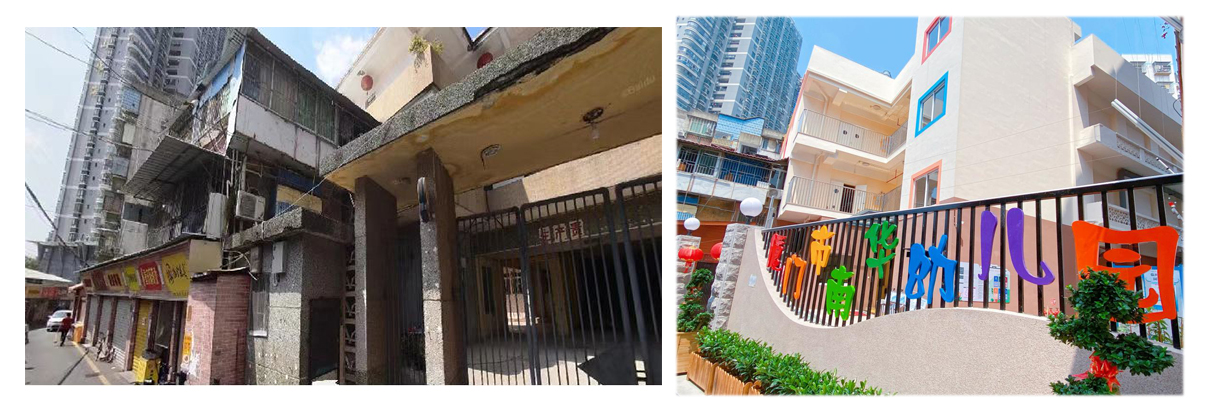 為加快補(bǔ)齊教育短板,拓寬教育資源供給渠道,根據(jù)廈門(mén)市政府2020年8月5日召開(kāi)“關(guān)于研究教育相關(guān)工作”專(zhuān)題會(huì)議精神,鷺京針織廠舊廠房改造為普惠性幼兒園--廈門(mén)市南華幼兒園,由思明教育公司負(fù)責(zé)運(yùn)營(yíng)管理。歷經(jīng)三年多的加固、裝修和改造,南華幼兒園從一座承載不少老廈港人記憶的荒廢舊廠房蛻變成為廈港片區(qū)孩子們的成長(zhǎng)樂(lè)園,并于2021年2月正式開(kāi)園。