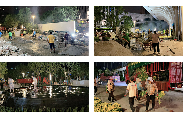 讓我們把時(shí)針撥回9月6日晚,距離第二屆海絲中央法務(wù)區(qū)論壇開(kāi)幕僅剩不到12小時(shí),現(xiàn)場(chǎng)還有大量的收尾工作需要完成??毓杉瘓F(tuán)兩位主要領(lǐng)導(dǎo)統(tǒng)籌指揮部署,副總工程師蔡泓、項(xiàng)目分管領(lǐng)導(dǎo)何清成、觀音山物業(yè)海西金谷廣場(chǎng)服務(wù)處主任陳文忠等一線(xiàn)干部職工連續(xù)多日通宵奮戰(zhàn),所屬公司參戰(zhàn)力量精銳匯聚。華燈閃爍,機(jī)器轟鳴,車(chē)輛穿梭,工人如織,所有參戰(zhàn)干部職工精神抖擻,忙碌有序,支撐下架、石材鋪設(shè)、綠植擺放、土頭清運(yùn)、衛(wèi)生保潔…通過(guò)通宵作戰(zhàn),幾個(gè)小時(shí)前的工地完成了華麗變妝,迎著仲秋和煦的晨光,步履輕盈朝著參加盛會(huì)的嘉賓款款走來(lái)。