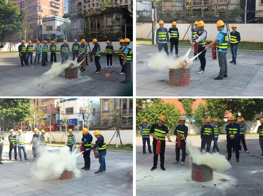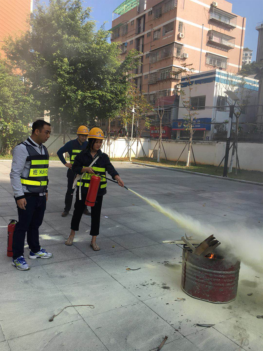 演練開(kāi)始,首先是對(duì)干粉滅火器的操作使用,隊(duì)員們采取兩兩分組,搖瓶,除封,拔銷,滅火,沉著冷靜,有條不紊,基本做到一次性完成滅火任務(wù),這對(duì)于平時(shí)很少實(shí)戰(zhàn)經(jīng)驗(yàn)的員工來(lái)說(shuō)實(shí)屬難得。
