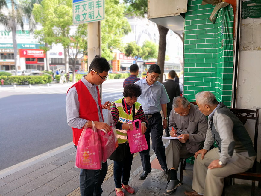 各小組分工合作,在督導員的帶領(lǐng)下,串街巷,進樓宇,入民居,在電子儀器廠、電子工業(yè)局、橡校新村182、開元房管所等周邊居民區(qū)宣傳垃圾分類常識,發(fā)送宣傳冊,讓垃圾分類知識走入平常百姓家。