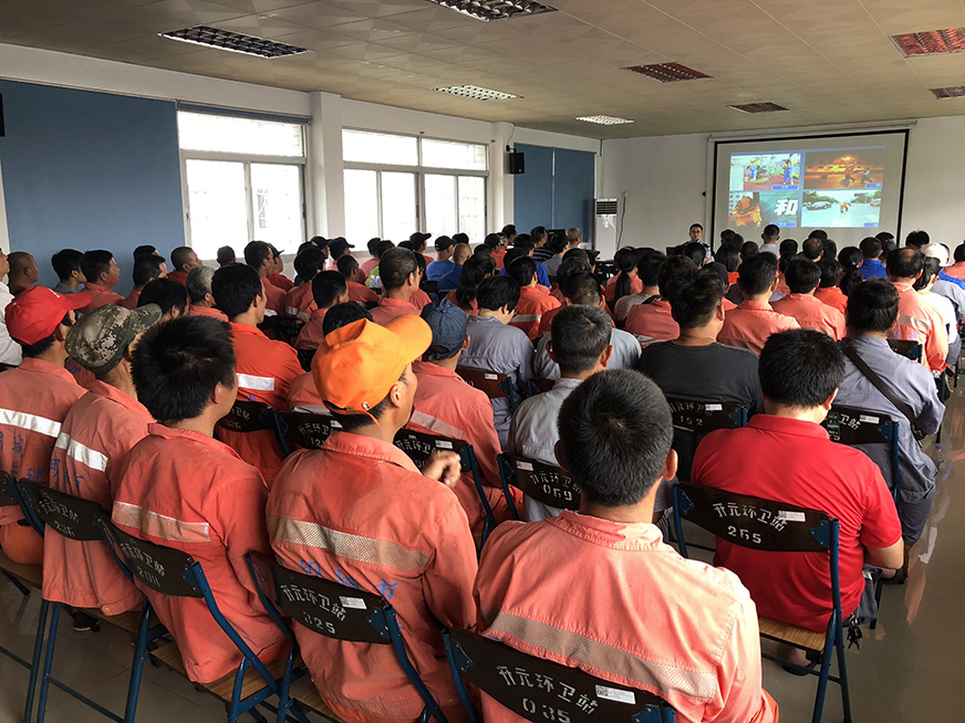 環(huán)衛(wèi)工人作為城市的“美容師”,長期在道路上作業(yè),身旁是絡繹不絕的機動車、非機動車,作業(yè)危險系數(shù)高。而不少環(huán)衛(wèi)工人安全意識薄弱。去年一年,思環(huán)公司就發(fā)生了數(shù)十起大大小小的交通安全事故。因此,提高環(huán)衛(wèi)工人的交通安全意識刻不容緩。此次宣講專門面向一線保潔員、管理員。會上,宣講人王警官緊密結合環(huán)衛(wèi)工作的性質和特點,從交通安全常識到日常路面環(huán)衛(wèi)作業(yè)應該注意的事項,逐一進行了深入淺出的講解。王警官還結合近期的交通事故案例,剖析因各種交通陋習、違法行為導致的危害和嚴重后果。