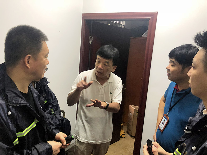 公司領(lǐng)導(dǎo)與工作人員入戶排查地勢低洼地帶房屋