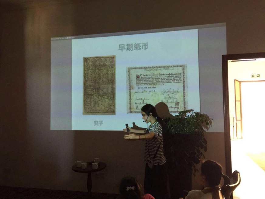 從以物換物到貝殼幣和石幣,從人工鑄幣再到便于攜帶的紙幣,支付形式從實(shí)物貨幣到現(xiàn)在的支付寶、微信支付等等,小朋友們通過(guò)老師生動(dòng)有趣的講解貨幣發(fā)展史,重新思考:錢(qián)是什么?