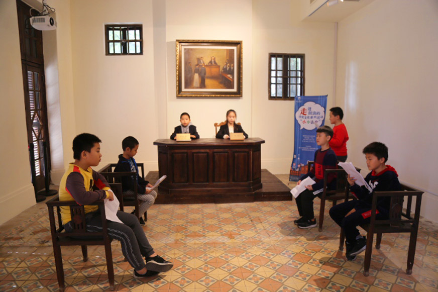 2018年12月22日,由廈門市鼓浪嶼資產(chǎn)管理有限公司、鼓浪嶼街道內(nèi)厝社區(qū)共同組織的“走進鼓浪嶼歷史文化”系列活動之“小小法官”,在鼓浪嶼會審公堂舊址舉辦。