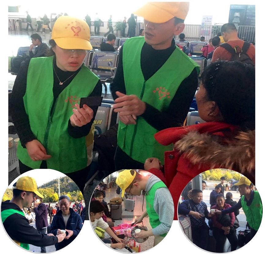 “請問我這張票要去哪里候車?”“請問一下梧村車站怎么走?”支部同志身著志愿者服裝一到場,就有許多受困旅客上前咨詢。每年春運(yùn)期間國內(nèi)各個火車站都會加派人手,做好各項(xiàng)準(zhǔn)備工作。但即便如此,依然會有許多旅客遇到困難,并難以在密集的人群中尋求幫助,在這個時候,分布在火車站各個地方的志愿者就是受困旅客最好的幫手。無論是各個車次的具體候車點(diǎn)、自助取票機(jī)的位置,還是周邊的餐飲、百貨、汽車站路線,甚至旅客需要開水時,志愿者都有隨身攜帶熱水壺和紙杯為旅客提供方便。支部同志們無論走到哪,身邊都會圍繞許多尋求幫助的受困旅客,支部每一位同志都以最飽滿的熱情悉心答疑,以實(shí)際行動為人民服務(wù)。