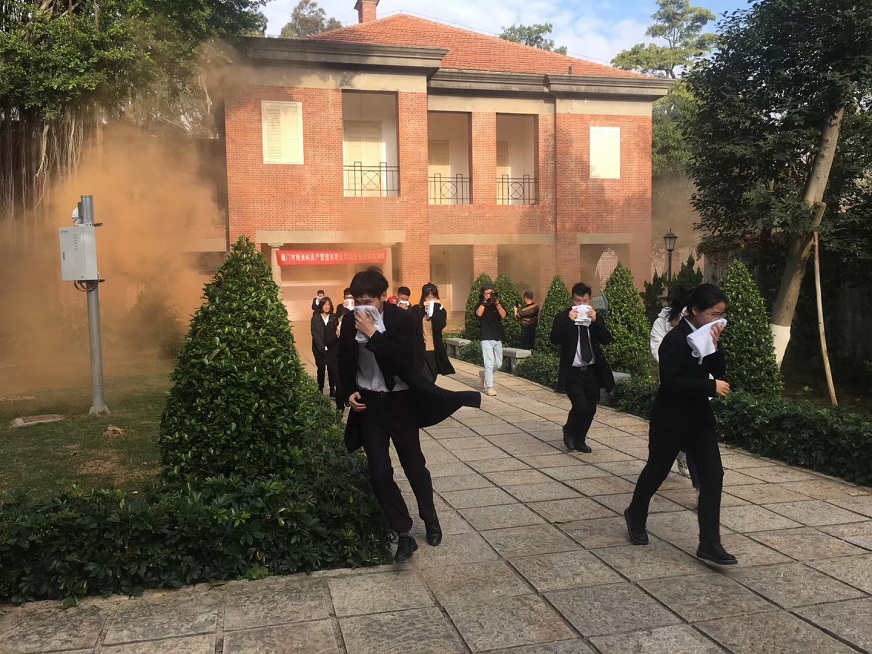 15點00分,演練拉開帷幕。匯豐銀行職員公寓2樓的電氣線路發(fā)生短路,導(dǎo)致起火并引燃附近的裝飾物,其中有一名游客受傷困在火場中。接到火情報告后,總指揮立即下達指令,啟動應(yīng)急救援預(yù)案,各應(yīng)急救援小組迅速集結(jié),在統(tǒng)一指揮下按職責分工迅速展開救援行動,按要求救出受傷游客,撲滅火災(zāi),并開啟疏散廣播引導(dǎo)全體人員疏散。最終,各應(yīng)急小組通力配合,協(xié)調(diào)有序,火災(zāi)事故得到有效處理,傷員得到成功救治,現(xiàn)場火勢得以撲滅,順利的完成此次應(yīng)急救援工作。15點05分,演練活動結(jié)束。
