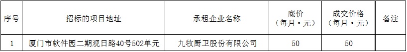 根據(jù)思明區(qū)國有企業(yè)資產(chǎn)出租管理的相關(guān)制度,我司2019年4月11日上午9:00于觀音山營運(yùn)中心2號(hào)樓2層2號(hào)會(huì)議室進(jìn)行公開招租現(xiàn)場(chǎng)開標(biāo),現(xiàn)通過思明控股網(wǎng)站對(duì)外發(fā)布成交公告。內(nèi)容如下: